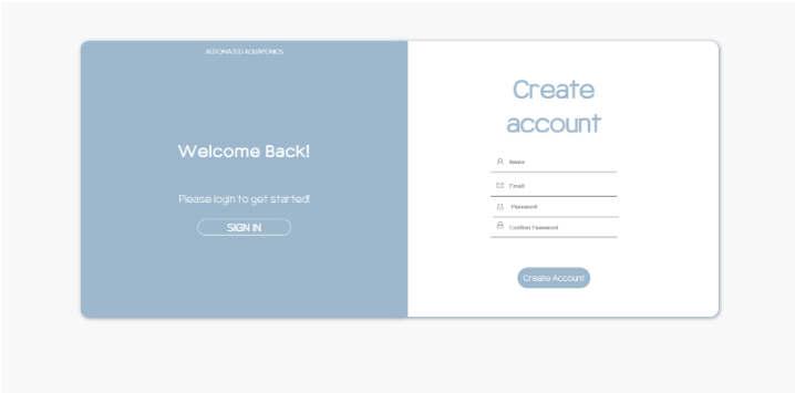 Web application sign up page for Automated Aquaponics (Capstone)